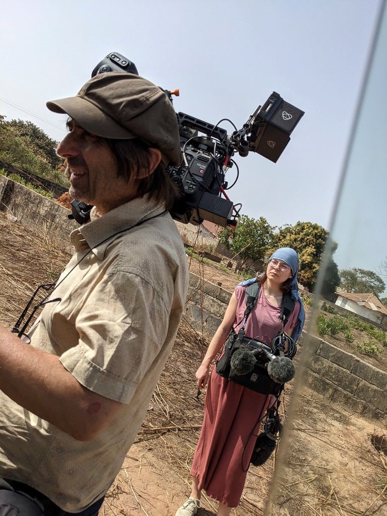 The documentary "Victoria and Siaka" (cinema, ORF) tells the story of the love between Siaka from Gambia and Victoria from Vienna. Their marriage has saved Siaka from deportation. Now they are travelling to Gambia to celebrate the wedding in his parents' small village in the traditional Islamic rite. With prayer, but also music, dance and the Gambian national sport of wrestling. Travelling in The Gambia were: Ivette Löcker (director), Lamin Touray (assistant director), Ines Vorreiter (sound) and Frank Amann (camera). Production: KGP Filmproduktion Vienna. (Photos: Ivette Löcker and Frank Amann).